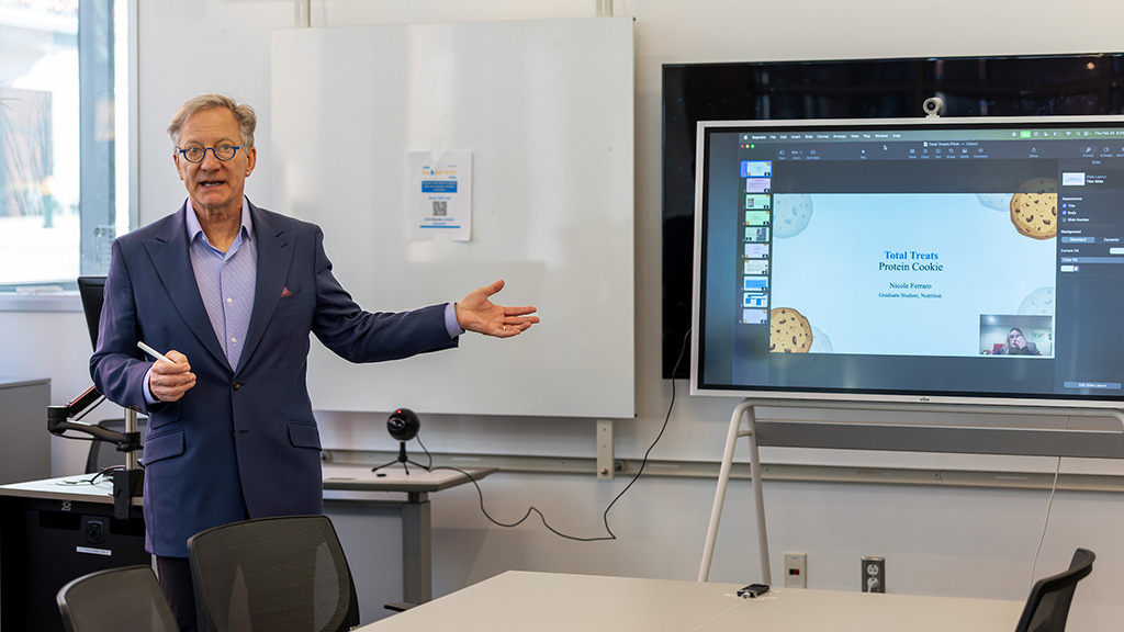 Once their ideas take shape, students move into the next phase: turning this inspiration into an actual business pitch. Students work tirelessly to refine their concepts, identify specific audiences, and communicate the identified problem and solution in a clear and concise manner. Many found JWU’s Entrepreneurship Center (aka The Launch Pad) imperative to the entire process, helping them formulate and refine their ideas. “Working with Dr. Jeff Binczyk has been such a huge help,” Shoda said. “He helped me organize my ideas and build connections.” Legreid added, “The Launch Pad played a huge role in helping me shape and tweak my idea into a strong pitch.”