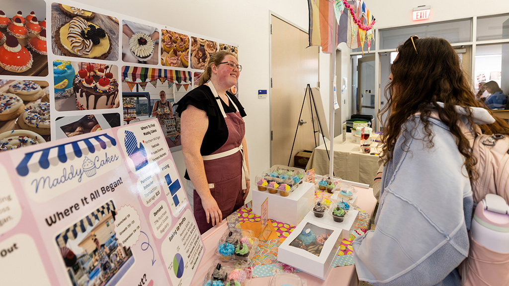 He wasn’t alone in this, as fellow winner and Food & Beverage Entrepreneurship major Isabella Mock ’27 also began her journey with a personal experience. Having worked in childcare for over two years, Mock noticed an opportunity in the form of Just Add Sugar, a subscription box service tailored for families to make and bake fun desserts while tying in real life concepts through math. Each box contains shelf-stable ingredients, recipe cards, math worksheets, and QR codes for easy step-by-step guides. “This product uplifts the youth and inspires young minds to think critically,” she said.